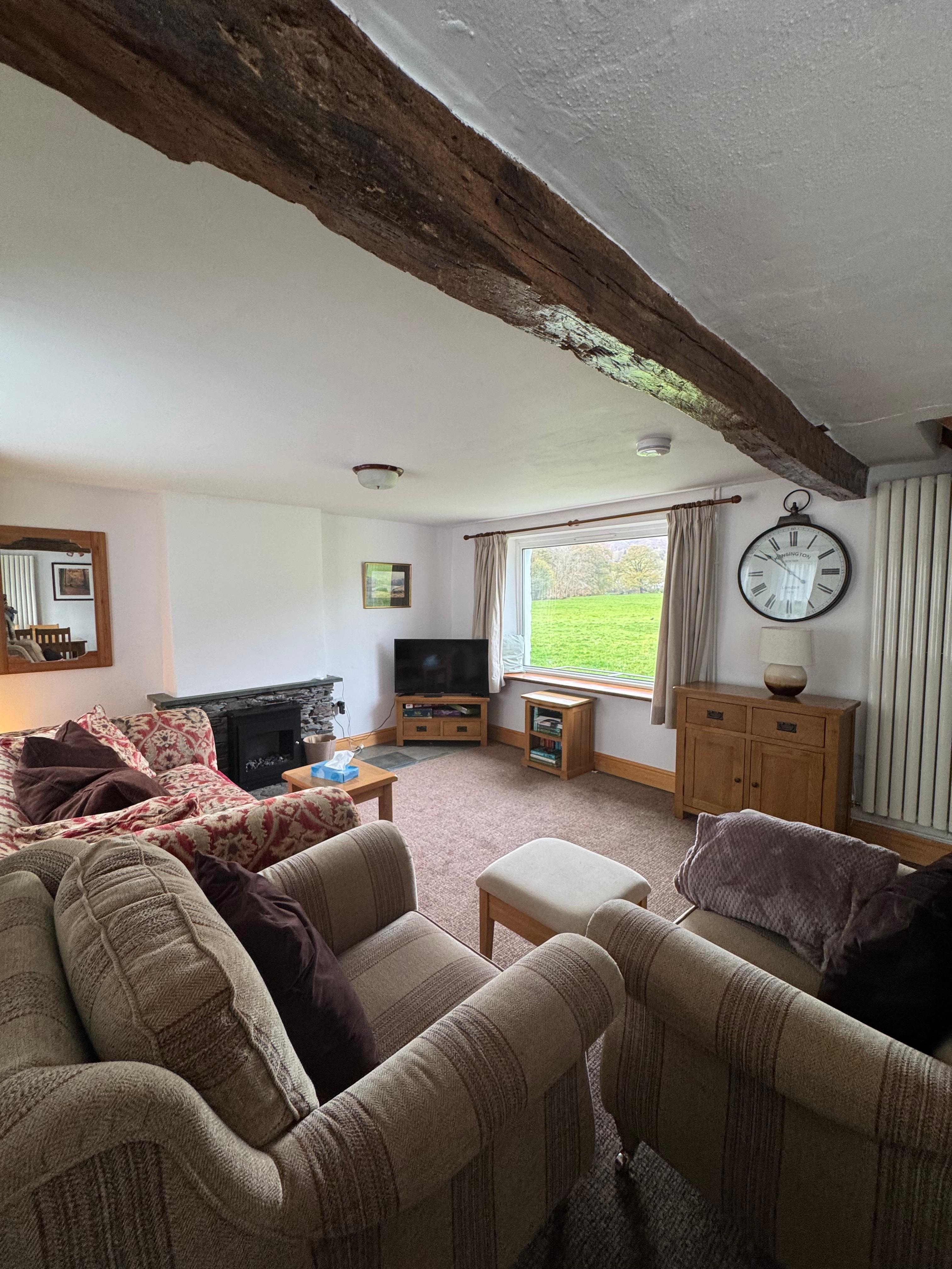 This cottage is the corner property in a small terrace of slate built cottages on the outskirts of Grasmere, which creates a wonderful secluded feel. This property backs onto the open plain around the River Rothay, with fantastic views across to Helm Crag, and surrounding hills - you can either sit and enjoy the view or use the time to plan your next walk or look back at the walks you have just completed.