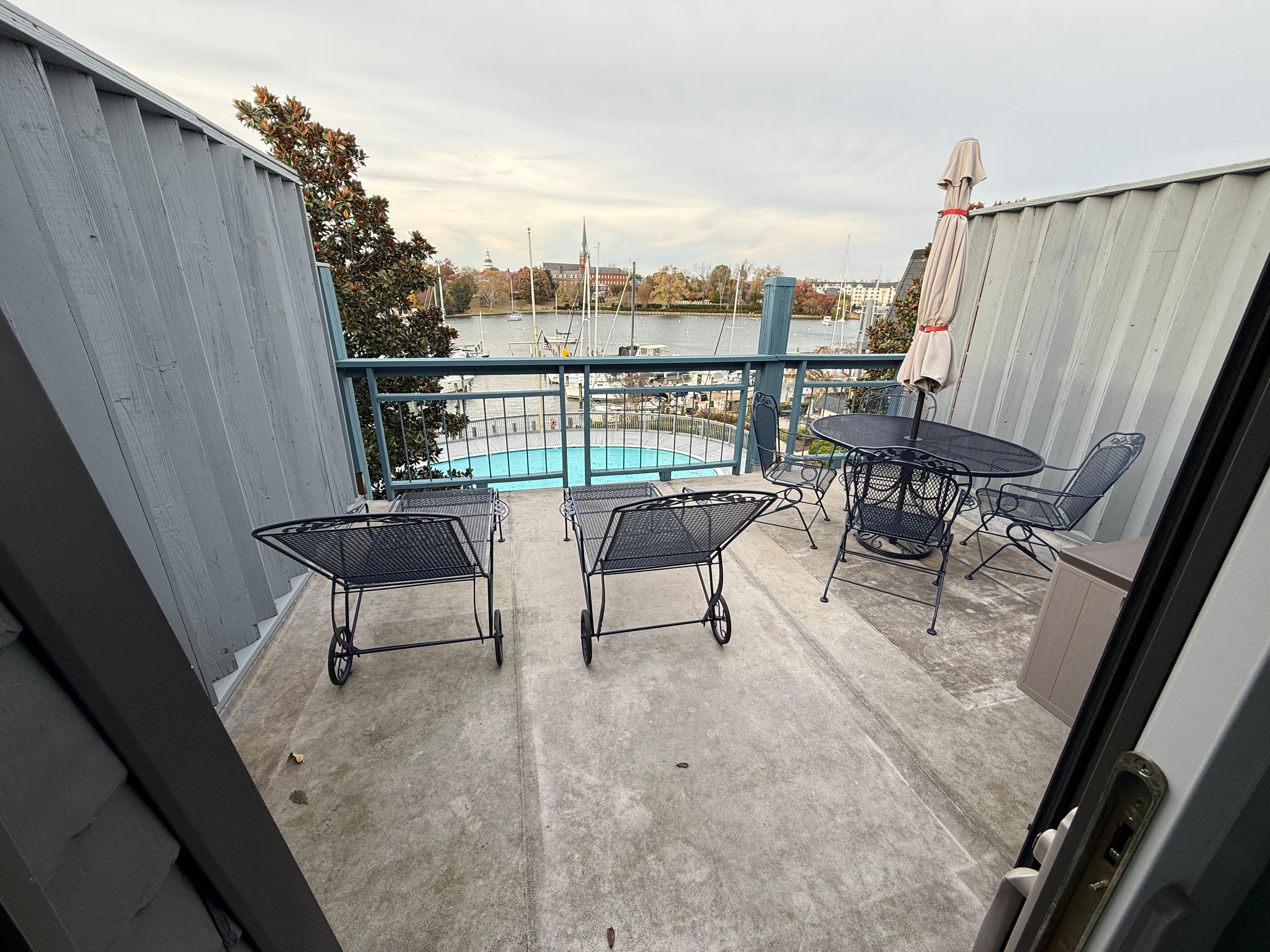 Private furnished balcony overlooking Spa Creek