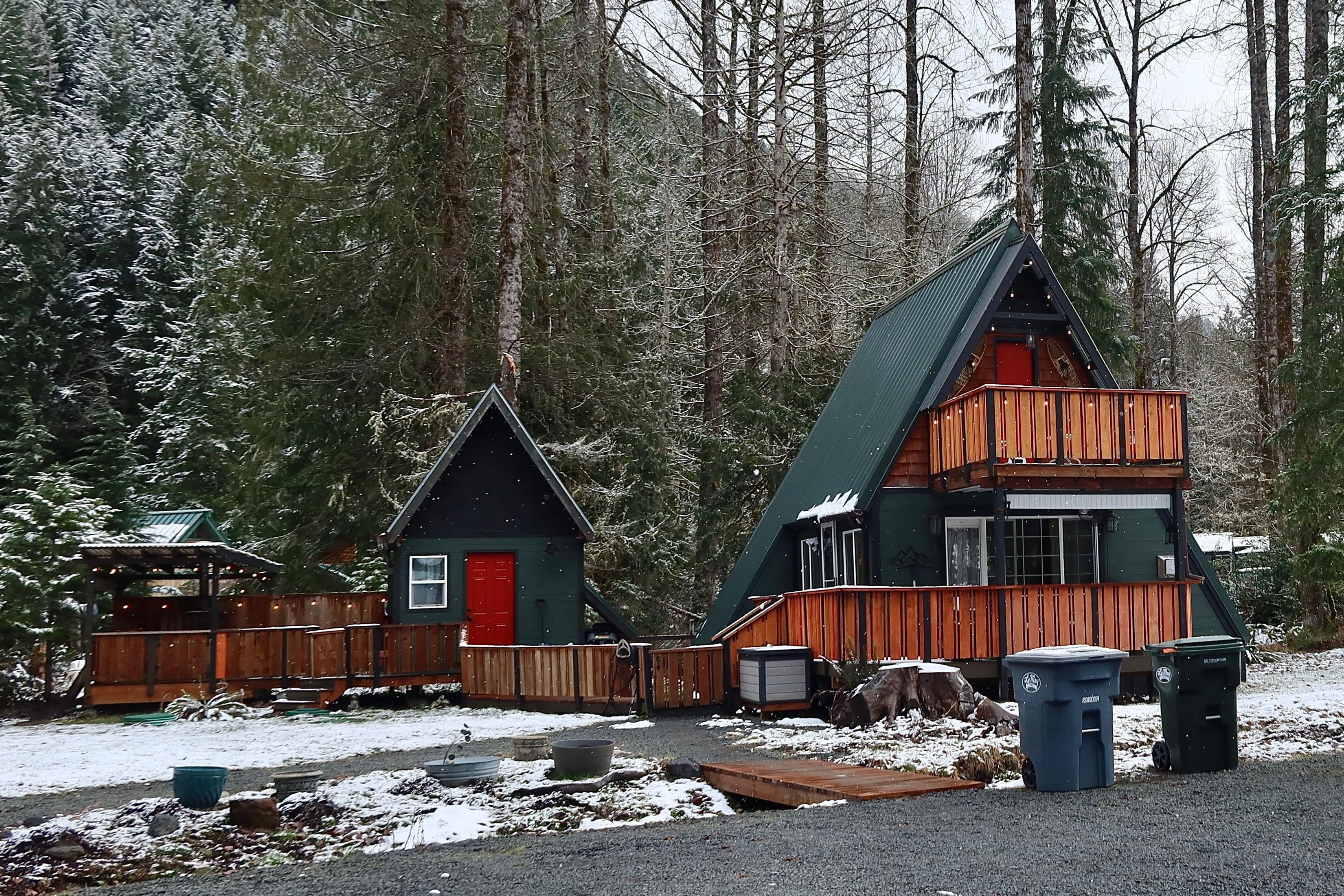 Just minutes from Mt. Rainierâs entrance, this cozy A-frame is the perfect mountain escape. Surrounded by meadows with views of Rainierâs foothills, youâll often spot deer grazing and birds visiting. Enjoy a soak in the wood-burning hot tub or unwind by the indoor fireplace. With high-speed WiFi, a full kitchen, and peaceful surroundings, Tahoma Peak A-Frame blends rustic charm and modern comfort for your ideal retreat.