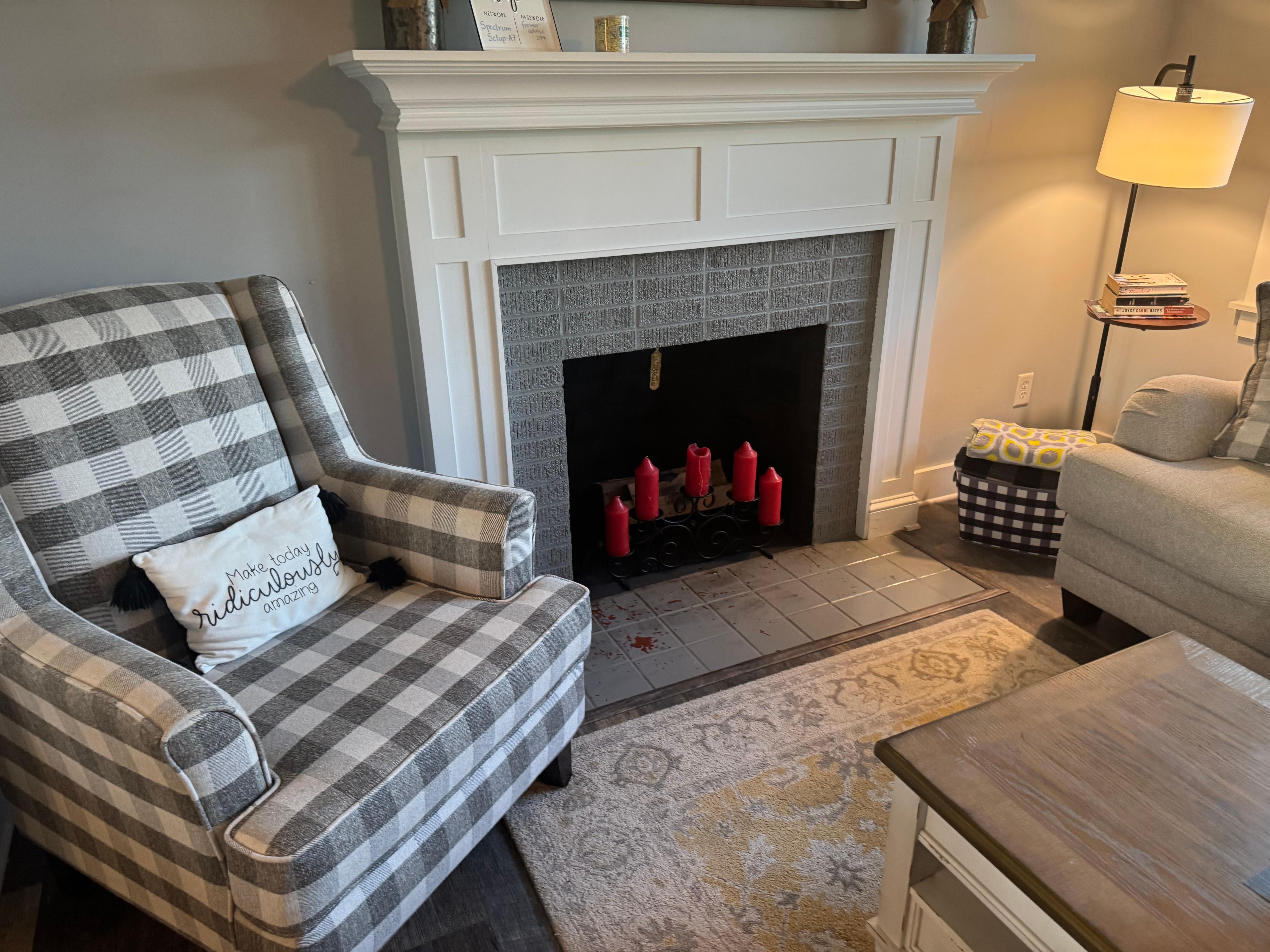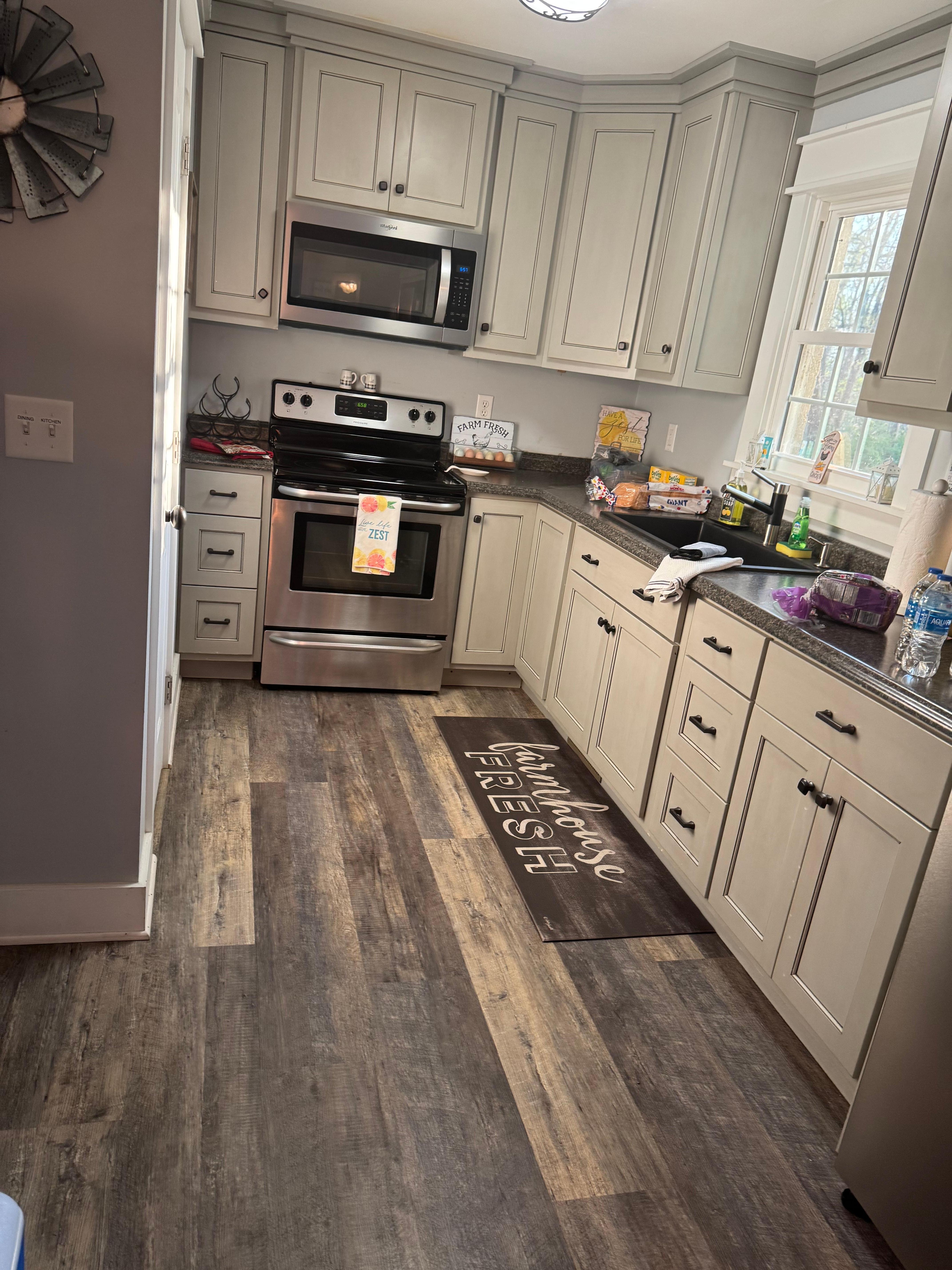 Walking past the laundry area (W/D), and out the back door, you’ll discover a beautiful deck with table, umbrella and chairs, as well as a shaded firepit sitting area where you can watch the sunset into the trees as the deer & squirrels run through the woods in between a couple of old barns, buildings, and canning sheds. Sitting on the front porch is a completely different vibe as the sunny front yard opens up to a small horse barn and acres of pasture. You are welcome to invite guests to enjoy the outdoor space; however, we ask that you limit it to 4 additional guests and request that they not stay overnight.