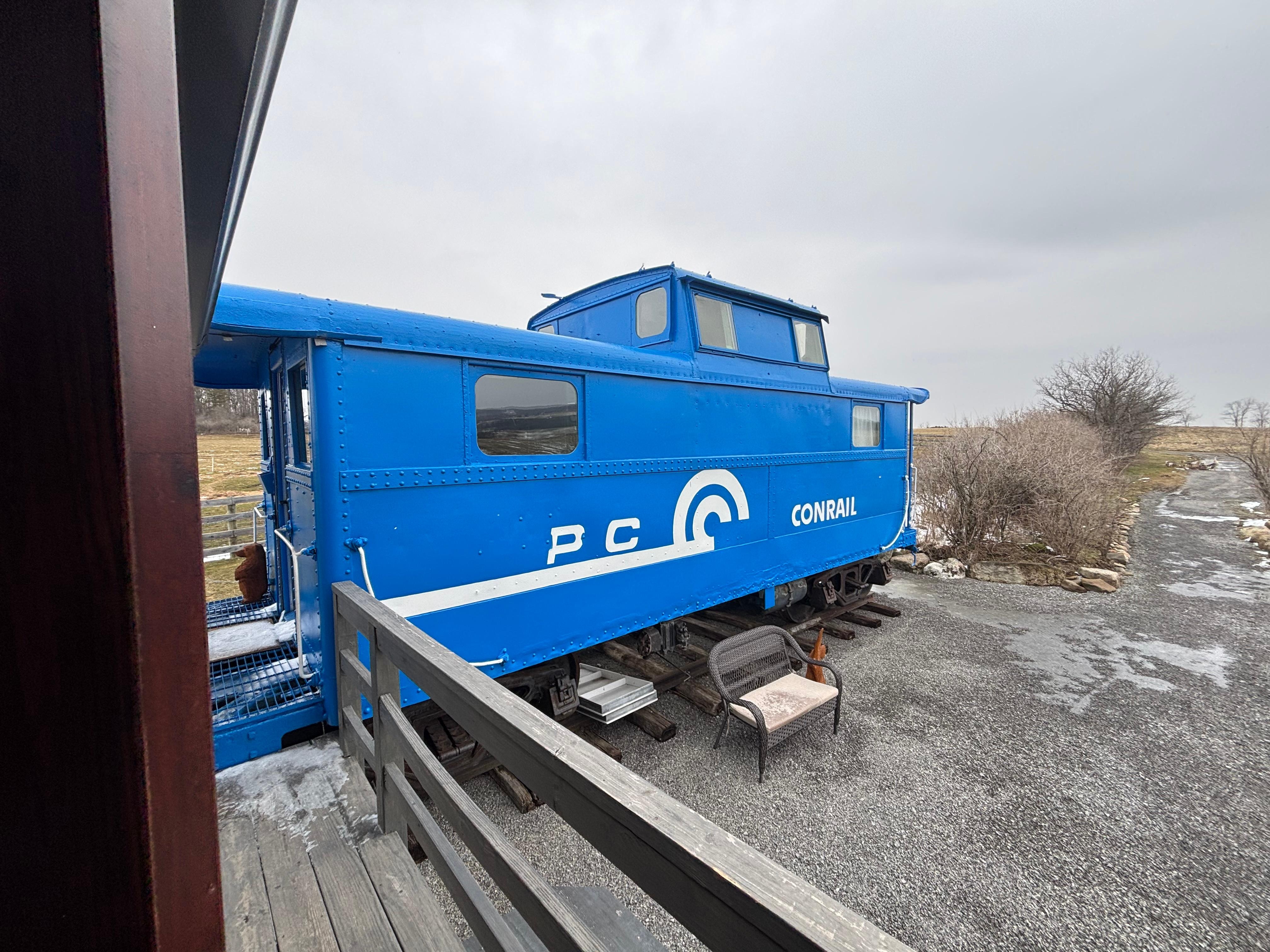 Stay in a TRAIN CABOOSE! Tucked away on 50 acres of farmland, enjoy this uniquely renovated caboose + train station combo, equipped with everything that you need for your next dream vacation, including: