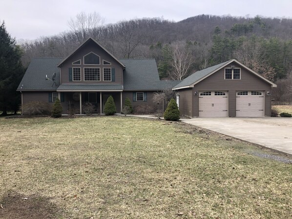 This custom built 3,400 square foot home features 4 traditional bedrooms, a low-ceiling loft that sleeps four above the recreational garage, and a brand new pull-out queen sofa in the 550 square foot family living room. 2 full baths and 2-1/2 baths make it ideal for up to 3 families. The Master Bedroom features a whirl pool tub and top/bottom day bed with stunning views of Pine Creek! Sitting on the deck and by the fire pit are the perfect spots to watch all that nature has to offer. Book your stay...we know you'll enjoy the Slate Run area as much as we do! Check back for updates!
