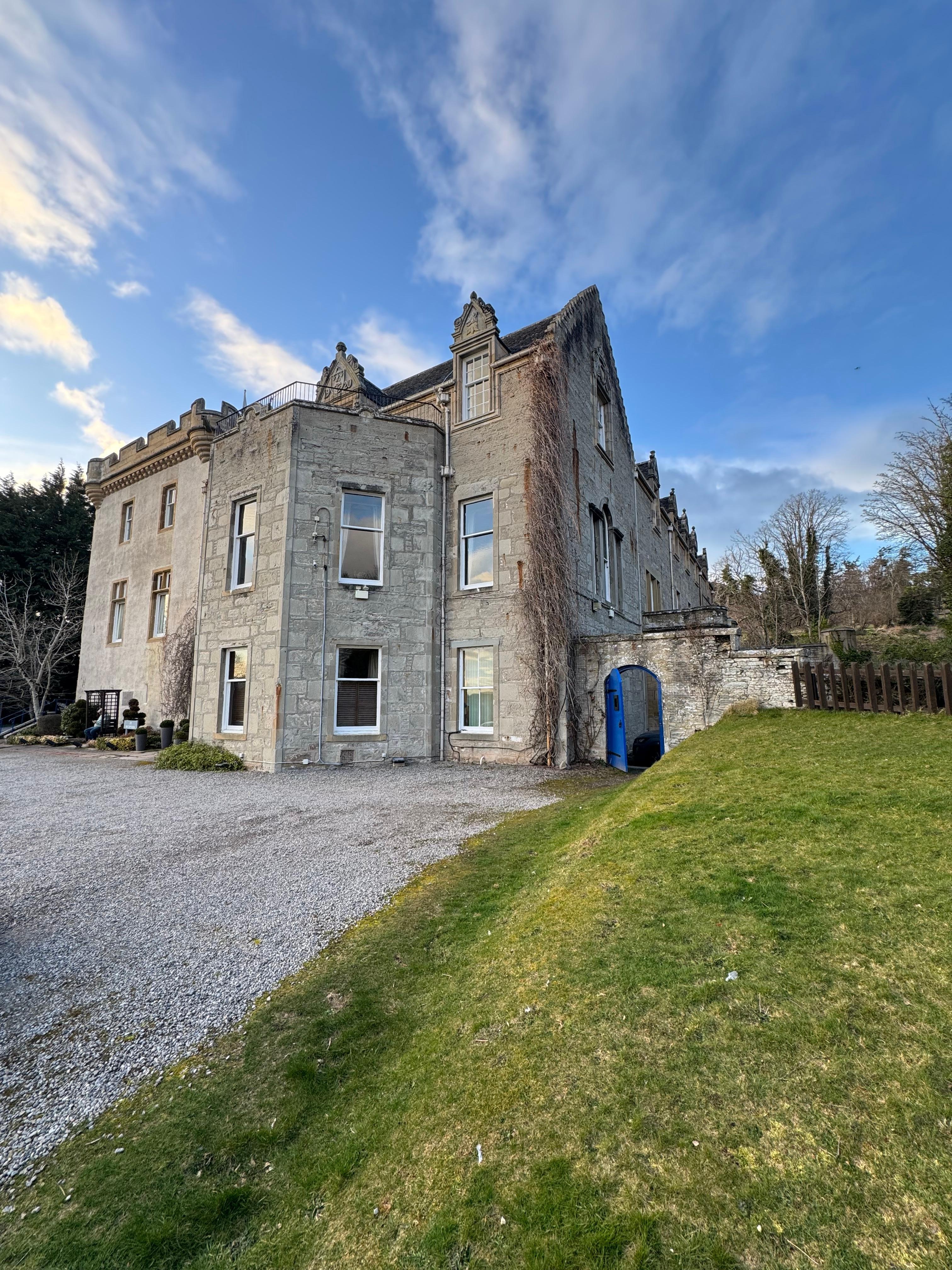 Es ist wirklich schade, dass man das Schloss so verkommen lässt. Der Preis ist keiner Weise für die Übernachtung gerechtfertigt. Die Zimmer sind einfach eingerichtet, dass ist an sich ok, aber Schimmel im Bad und am Duschvorhang gehr gar nicht. Wir haben in Schottland sogar im Hostel mehr Sauberkeit gehabt. Leider durfte man in verschiedenen Gängen auch keinen zweiten Blick riskieren, da hier der Putz von den Wänden fällt und Fenster kaputt (Glas richtig gebrochen) sind. Wir wollten uns in der Bar/Restaurant verköstigen. Leider sind wir hier sehr schnell geflüchtet, da noch nicht einmal die Tische abgewischt wurden und es eher einen "Schmuddelcharakter" hatte. Hier fehlt wirklich die Liebe zum Hotel und Detail und die Notwendige Sauberkeit. Ich habe schon auf anderen Schlössern für weniger Geld übernachtet und es war top. Ich bin wirklich nicht pinkelig, aber ich rate ernsthaft dort nicht hinzufahren ausser man möchte unbedingt im einzigen Restaurant essen. Das ist ein Inder und der ist wirklich super.