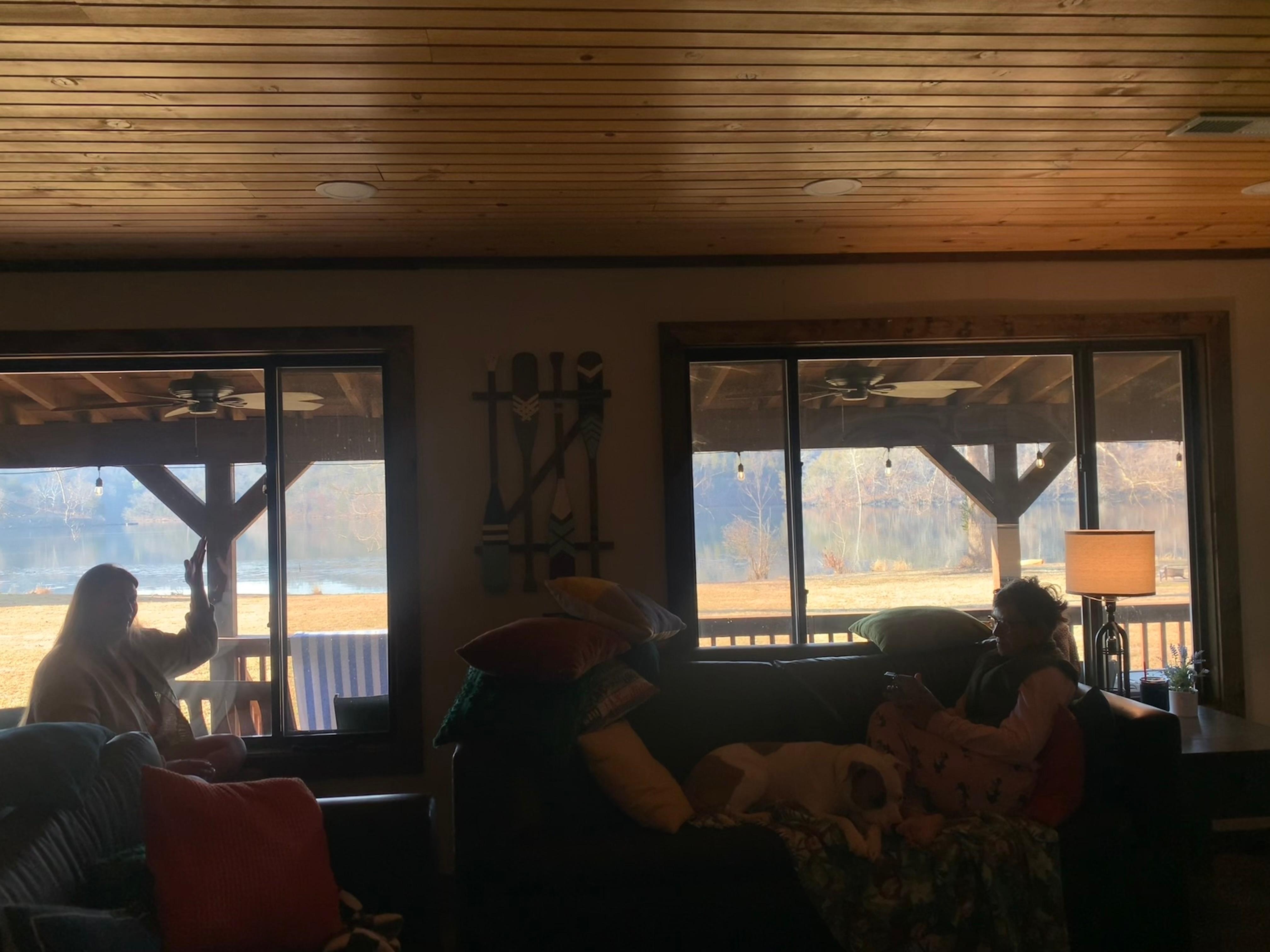 A wall of windows that overlooks the lake. You cannot beat this view!