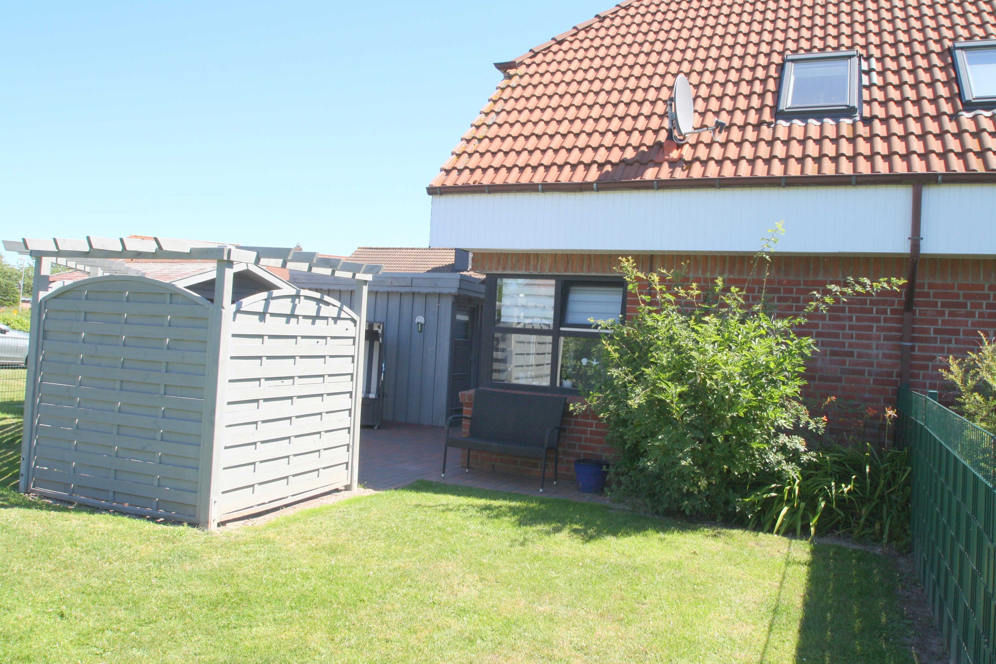 • Terrasse mit Gartenmöbel, Strandkorb, Grill und Gartenhäuschen (Unterstellmöglichkeit für Fahrräder)