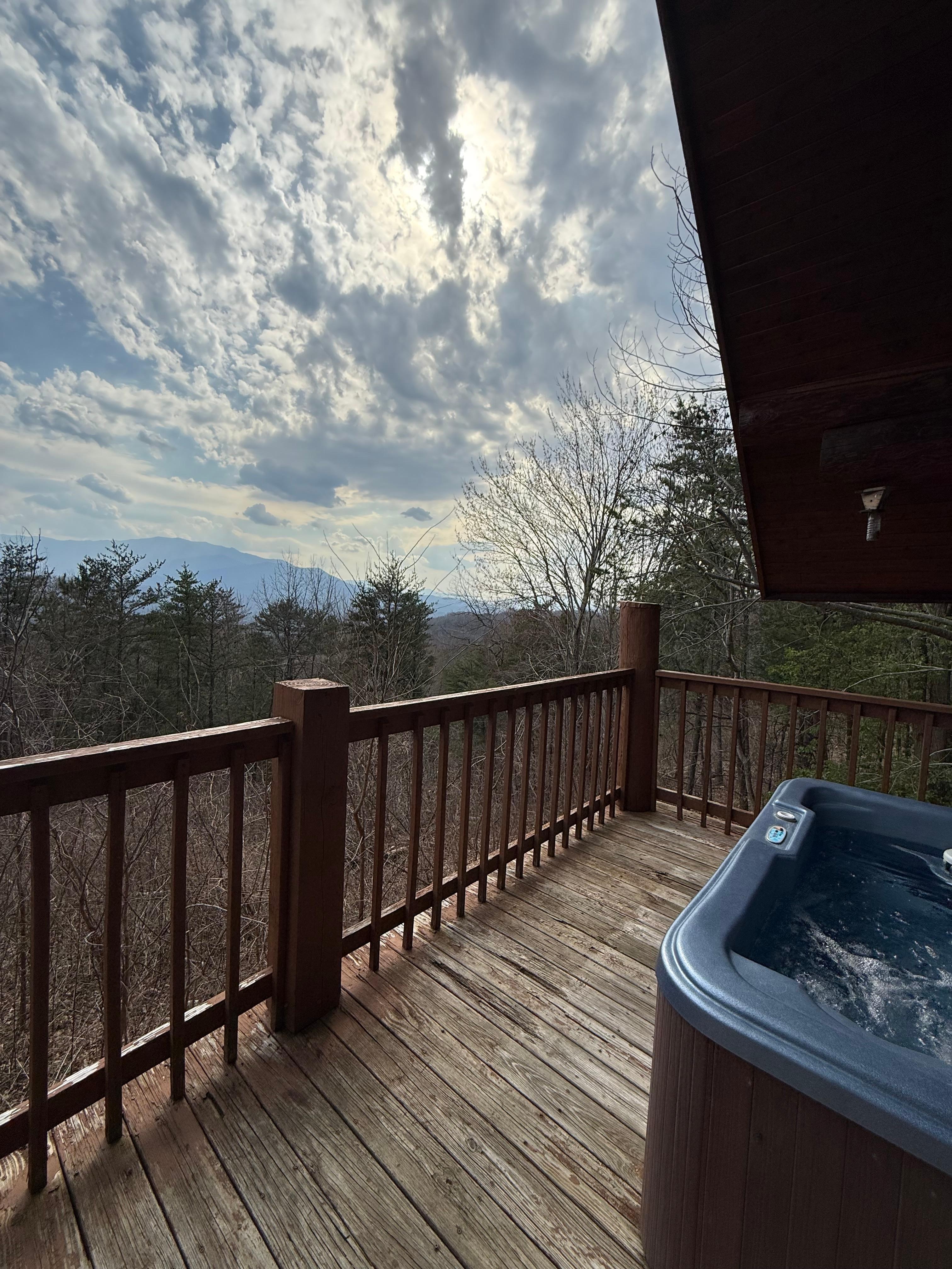 Schöne Mountain View Cabin I Alleinlage. Dieses abgelegene Blockhaus in den Bergen bietet 1 Kingsize-Bett / Studio - 1 Bad mit stilvollem Loft im Obergeschoss. Diese Kabine verfügt über eine schöne Gewölbedecke mit großen Fenstern, die die Schönheit der Natur ins Innere bringen, maßgefertigte Holzmöbel, einen Steinkamin und einen großen Whirlpool. Die Küche ist voll ausgestattet mit allem, was Sie zum Zubereiten von Mahlzeiten und Erinnerungen benötigen! Der Whirlpool auf dem privaten Deck eignet sich hervorragend für kühle Abende in den Bergen, eine romantische Kulisse zum Betrachten der Sterne oder zum Entspannen nach einem erlebnisreichen Tag.