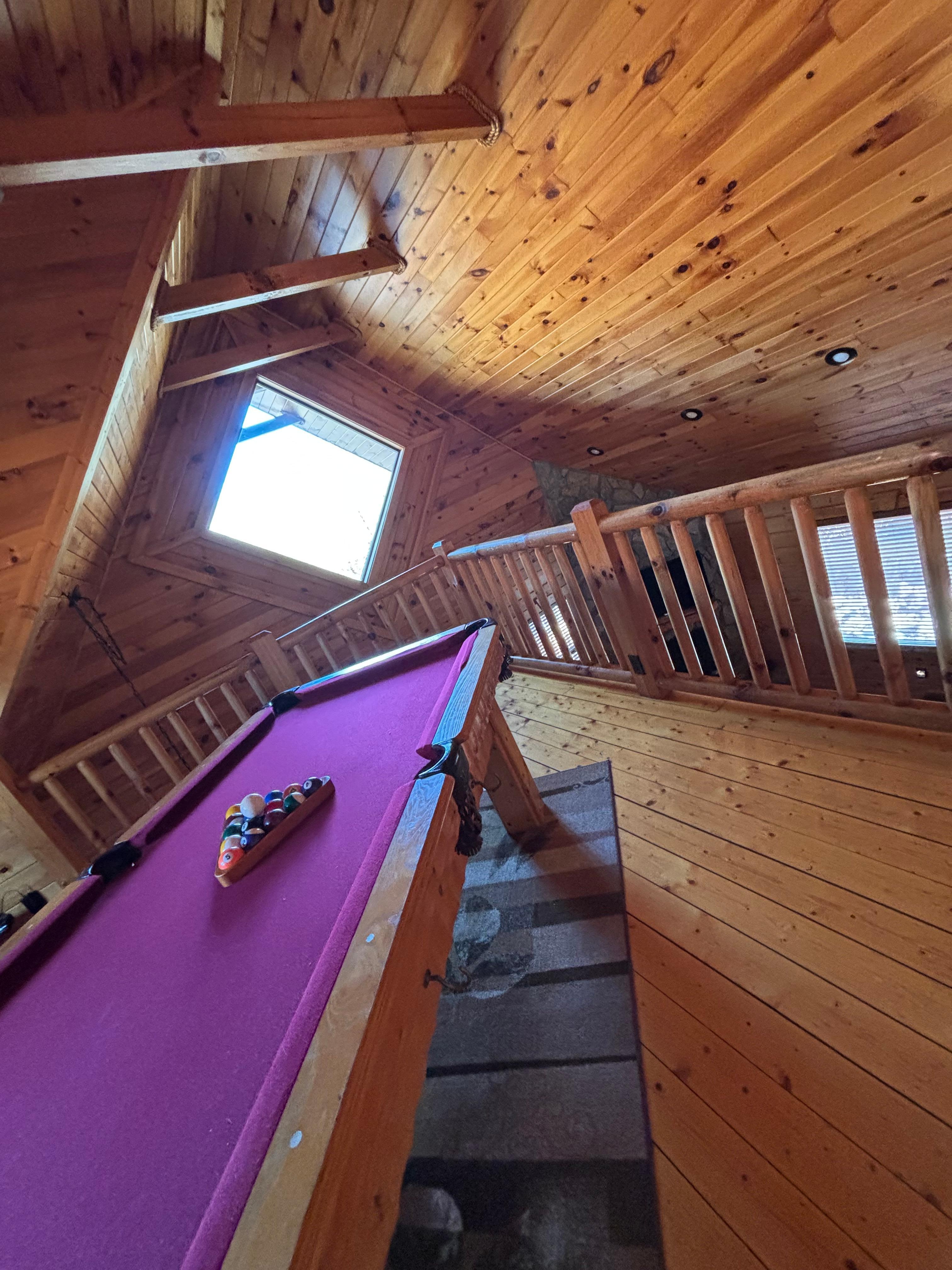 Upstairs you will find the game loft with the pool table and multi-game arcade machine.