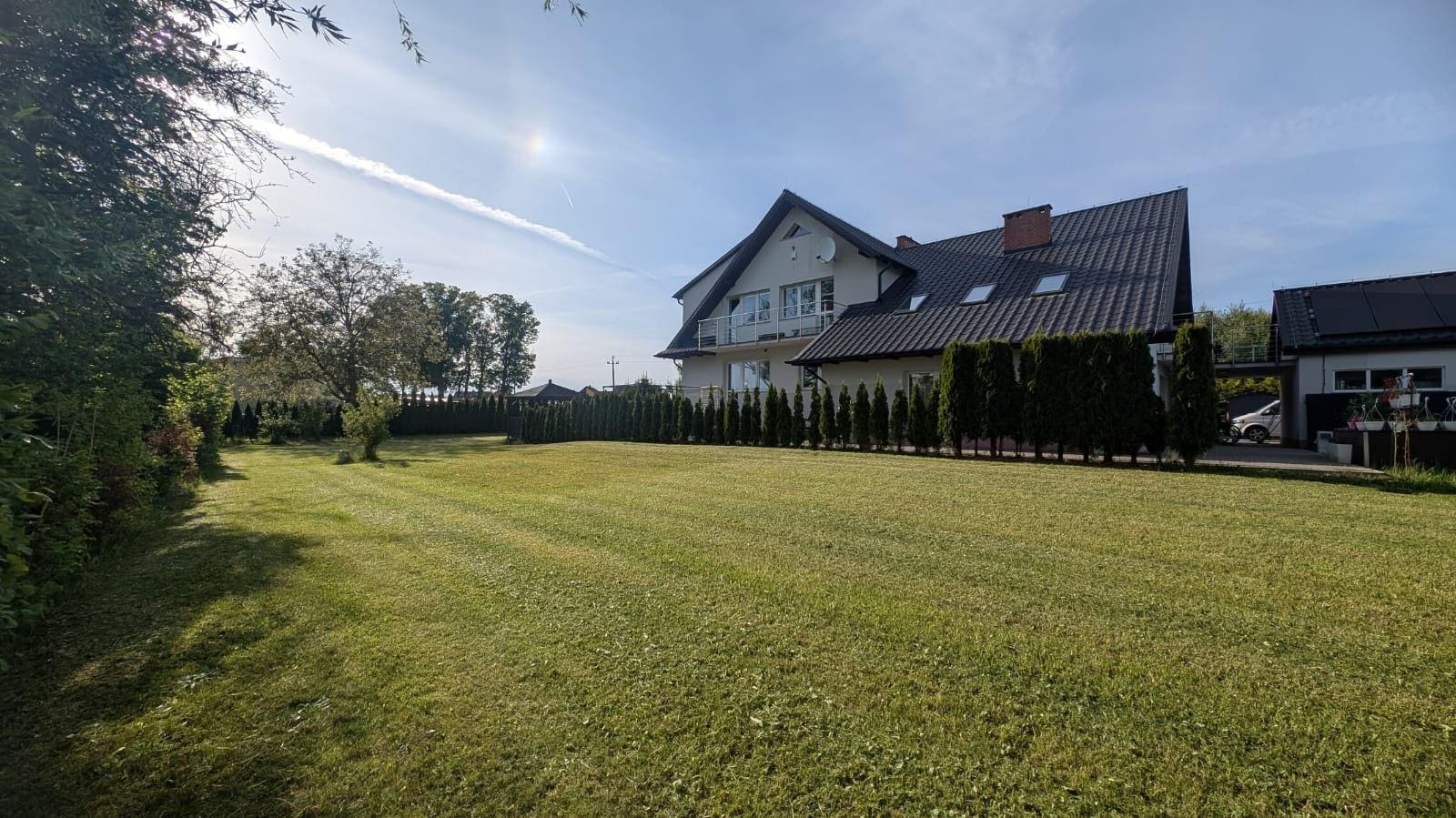 Die Einfahrt zum Haus sowie das Haus selbst sind elektronisch gesichert und überwacht. Der Gästeparkplatz befindet sich direkt vor dem Haus.
