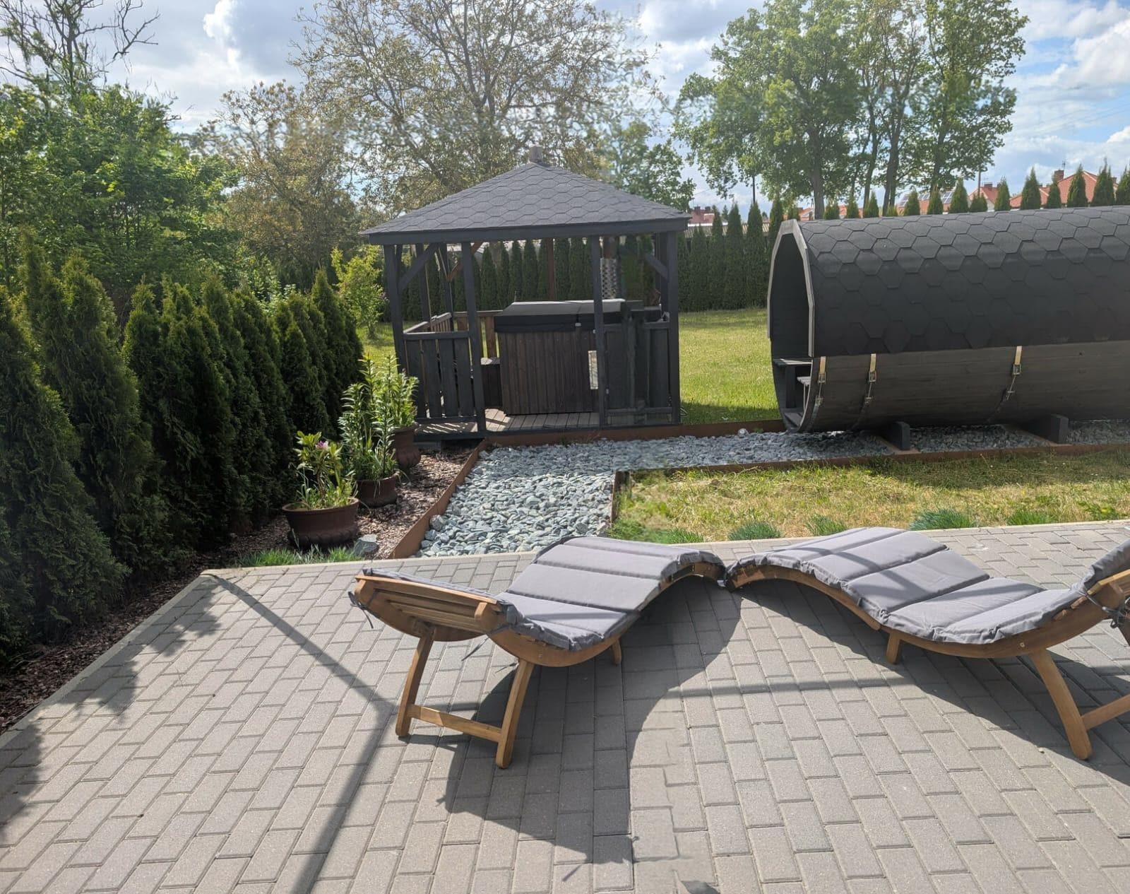 Eine private Sauna steht im Außenbereich auf Anfrage zur Verfügung : per Holzofen beheizt ( 5 Euro je Stunde )