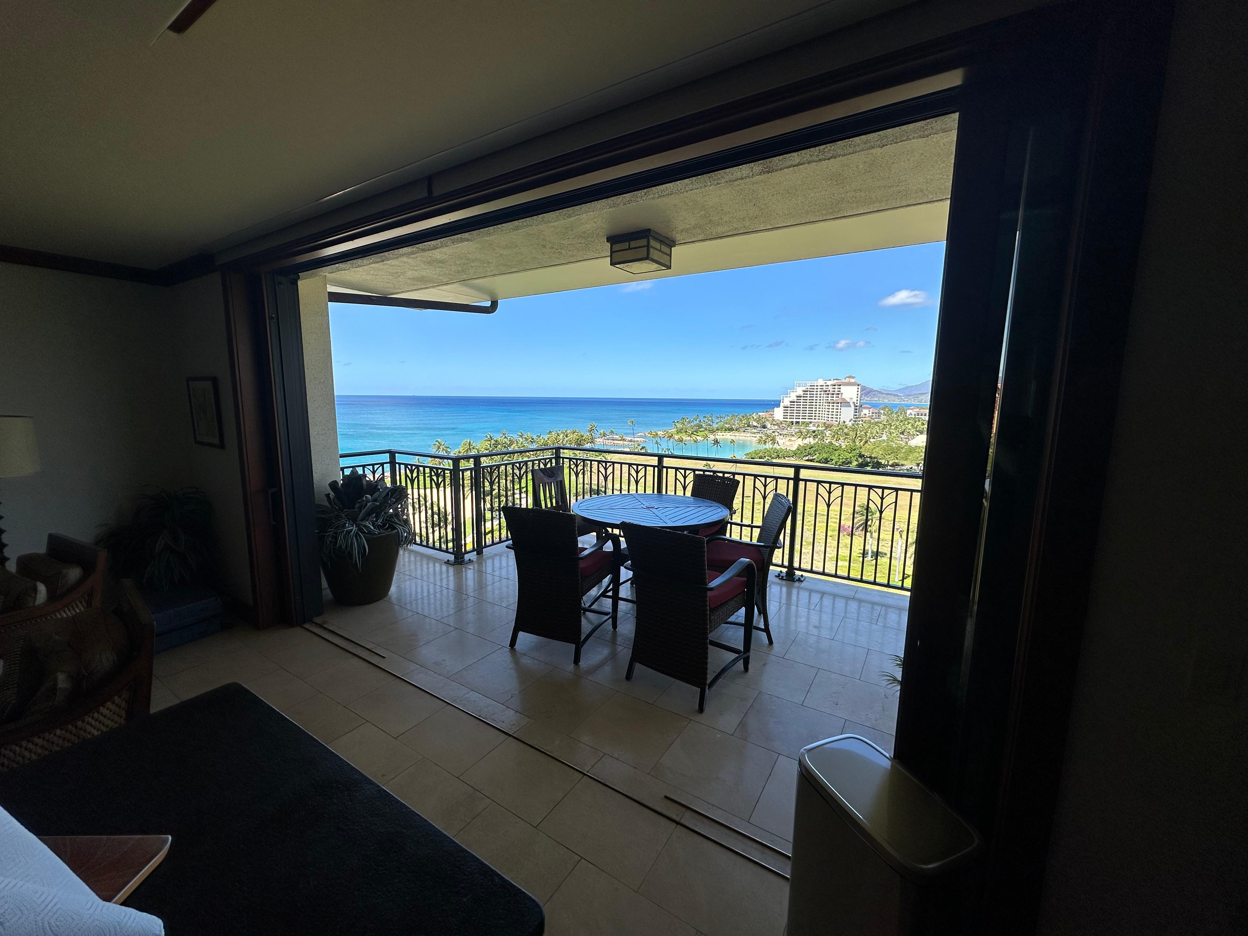 This penthouse is an excellent location! Beautiful views of the ocean and lagoon from the lanai. We enjoyed having our breakfast there every morning. It was nice having beach chairs, cooler and beach towels as well. My family and I thoroughly enjoyed our week there. We miss it already and look forward to returning!