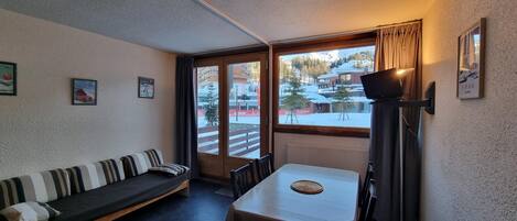 100m from ski slopes, 1st floor, view ski slopes, balcony, tv, 30mÂČ, La Plagne