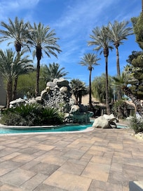 The condo was part of a large complex which also offers a gym and a small communal pool. The larger pool was closed due to improper maintenance during our stay. Las Vegas Boulevard (Strip) is more than "a stone's throw"away, you need at least 30 minutes on foot. The flat is large but dated and poorly maintained. The air conditioning was loud and not very effective, the fittings in the bathrooms were loose, as were some of the floor tiles. The kitchen barely has enough glasses, the equipment is poor compared to other accommodation in this price category. The communication was not very smooth. We only received the check-in information the night before (when we went through the Fewo Direkt support line) because the host did not respond to messages beforehand. The location is good, everything can be reached quickly by car (parking is free within the complex, but expensive in the city). The apartment complex is old but nice.