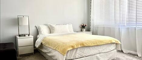 Inside, the home features a stylish open layout, modern finishes, a fully equipped kitchen, and comfortable, cozy living spaces. Each bedroom is thoughtfully furnished for restful nights after days of beach trips or downtown adventures.