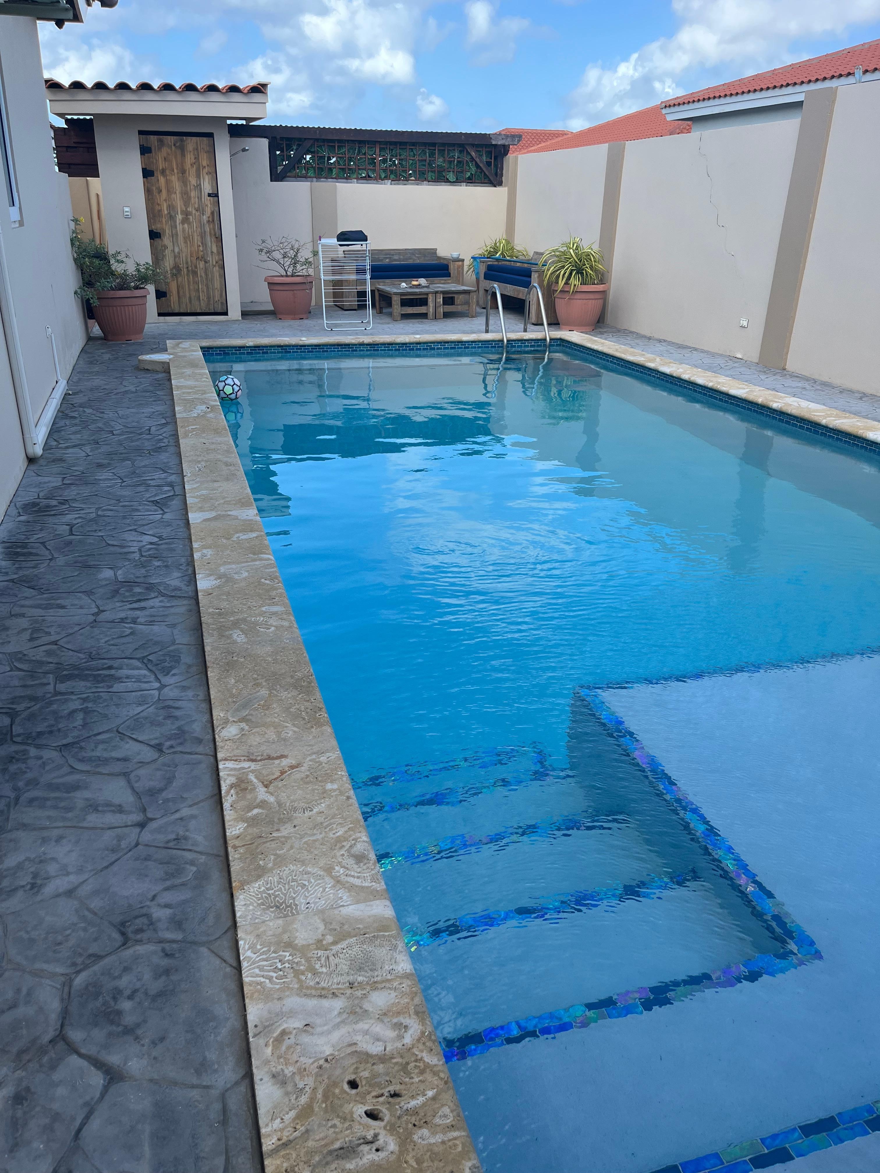 Unique house in Aruban style incl. swimming pool, outdoor kitchen and outdoor toilet / shower for 6 (to 8) people located in the beautiful, luxurious and quiet Monte Verde Residence neighborhood! Relax on this beautiful island and visit Oranjestad, the beaches and unspoilt nature from one central location (all accessible between 5 and 10 minutes!).