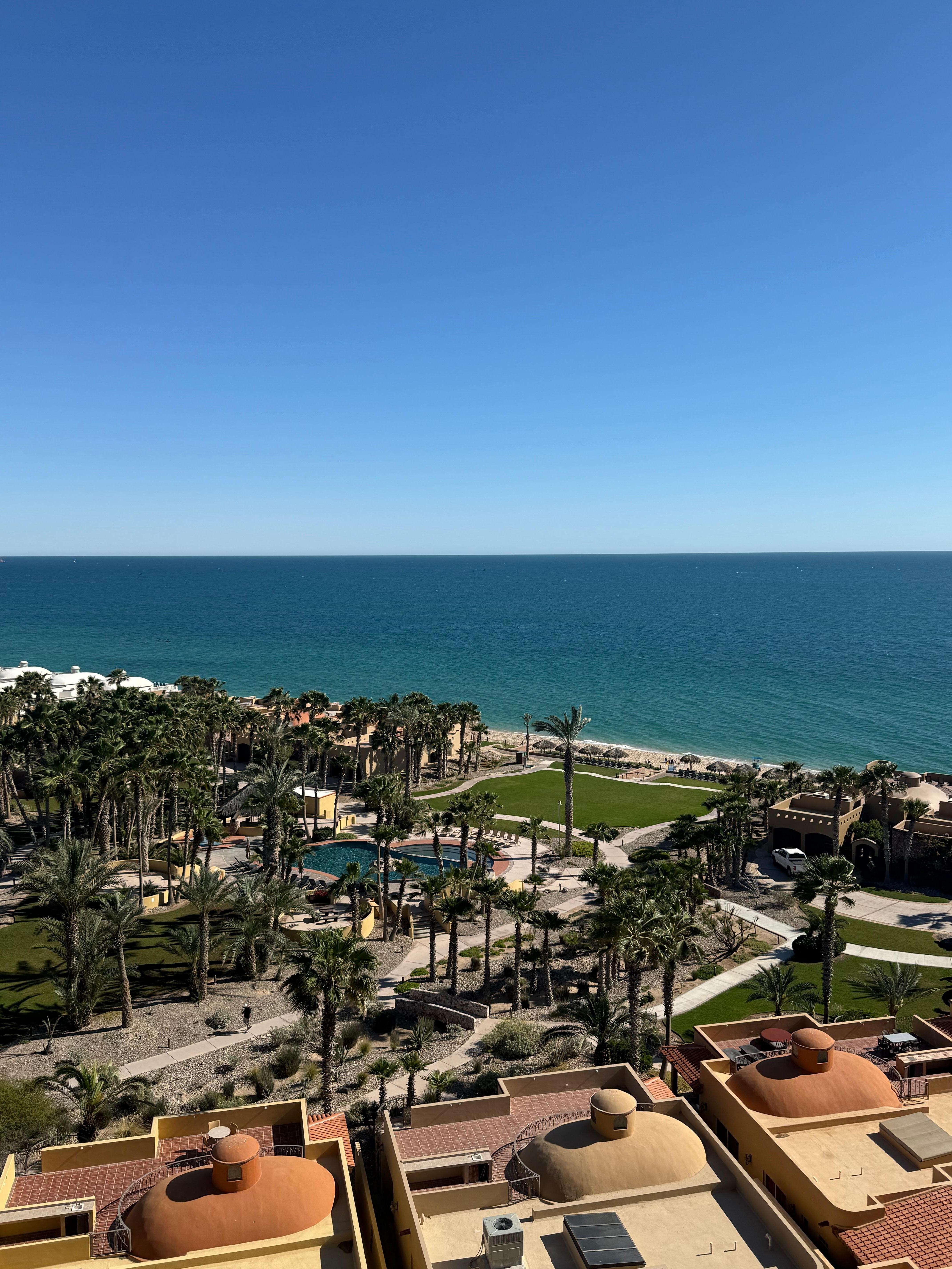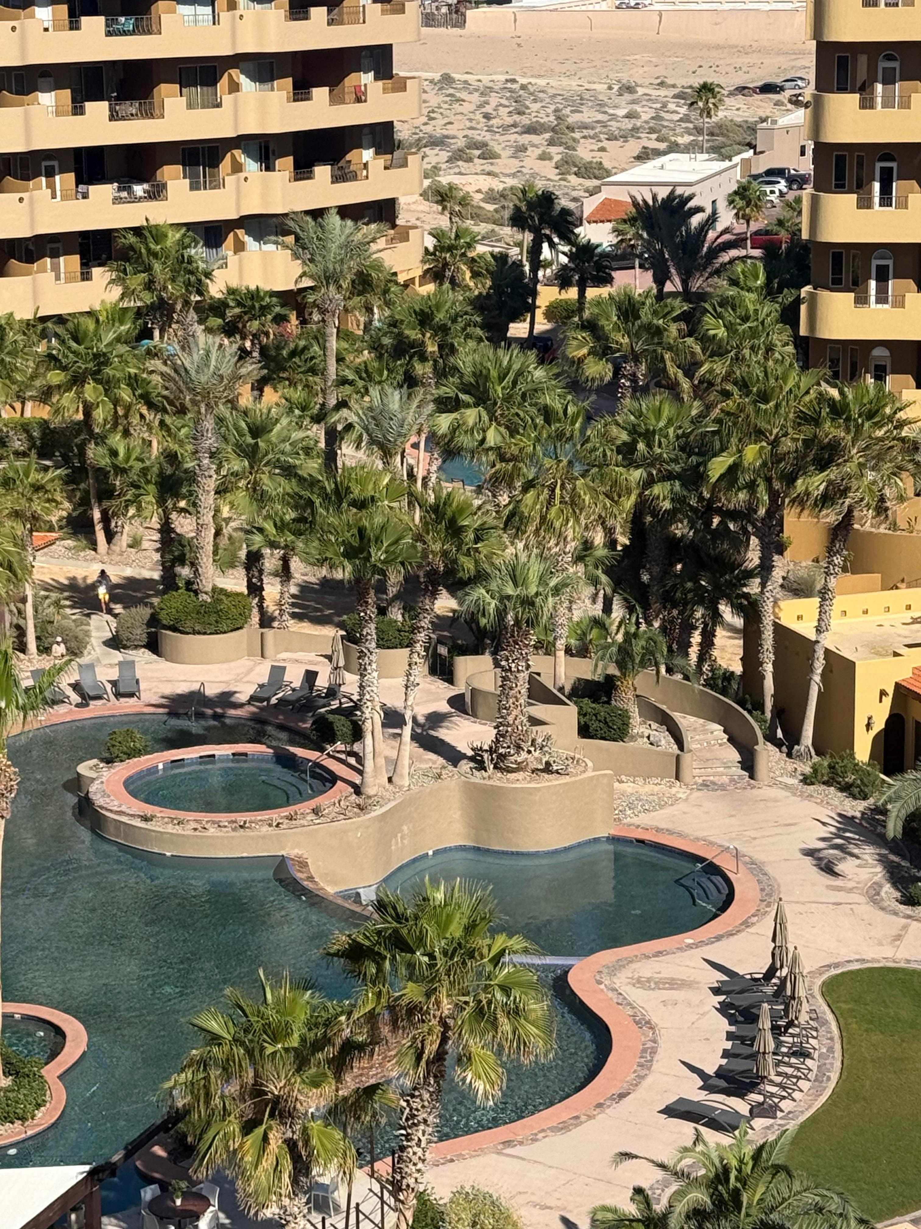 Located in the E building which is the closest to the ocean, this 7th-floor one-bedroom penthouse is one of the kind with a spectacular view of the Sea of Cortez and Old Port from your own balcony! It features high ceilings, granite countertops, slate floors, and a large patio accessible from both the bedroom and living room. The sofa and love seat in the living room can turn into a queen and a single bed if needed.