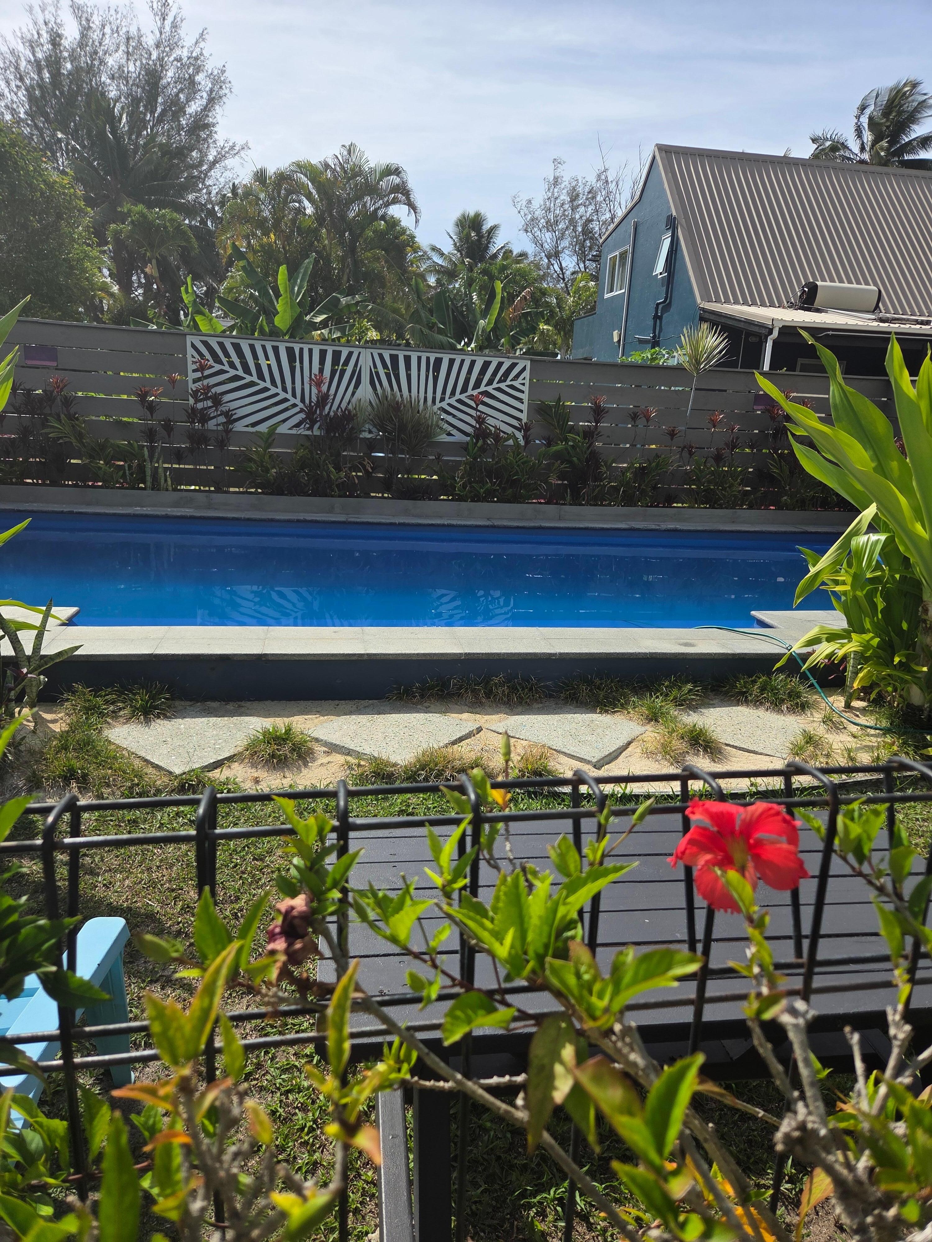 Die Muri Beach Pool Villa steht Ihnen während Ihres gesamten Aufenthalts zur alleinigen Verfügung! Der Pool ist nur ein halbes Dutzend Schritte vom Deck entfernt. Es ist eingezäunt, also kindersicher. Es gibt 3/4-Morgen-Rasenflächen und Landschaftsbereiche, einschließlich unseres privaten Strandbereichs, der alles ist, was Sie genießen können! Unsere private Umgebung ist eine der letzten in Muri, die nicht mit mehreren Wohneinheiten ausgestattet oder zu einem Hotel umgebaut wurde. Deshalb sind wir so beliebt!