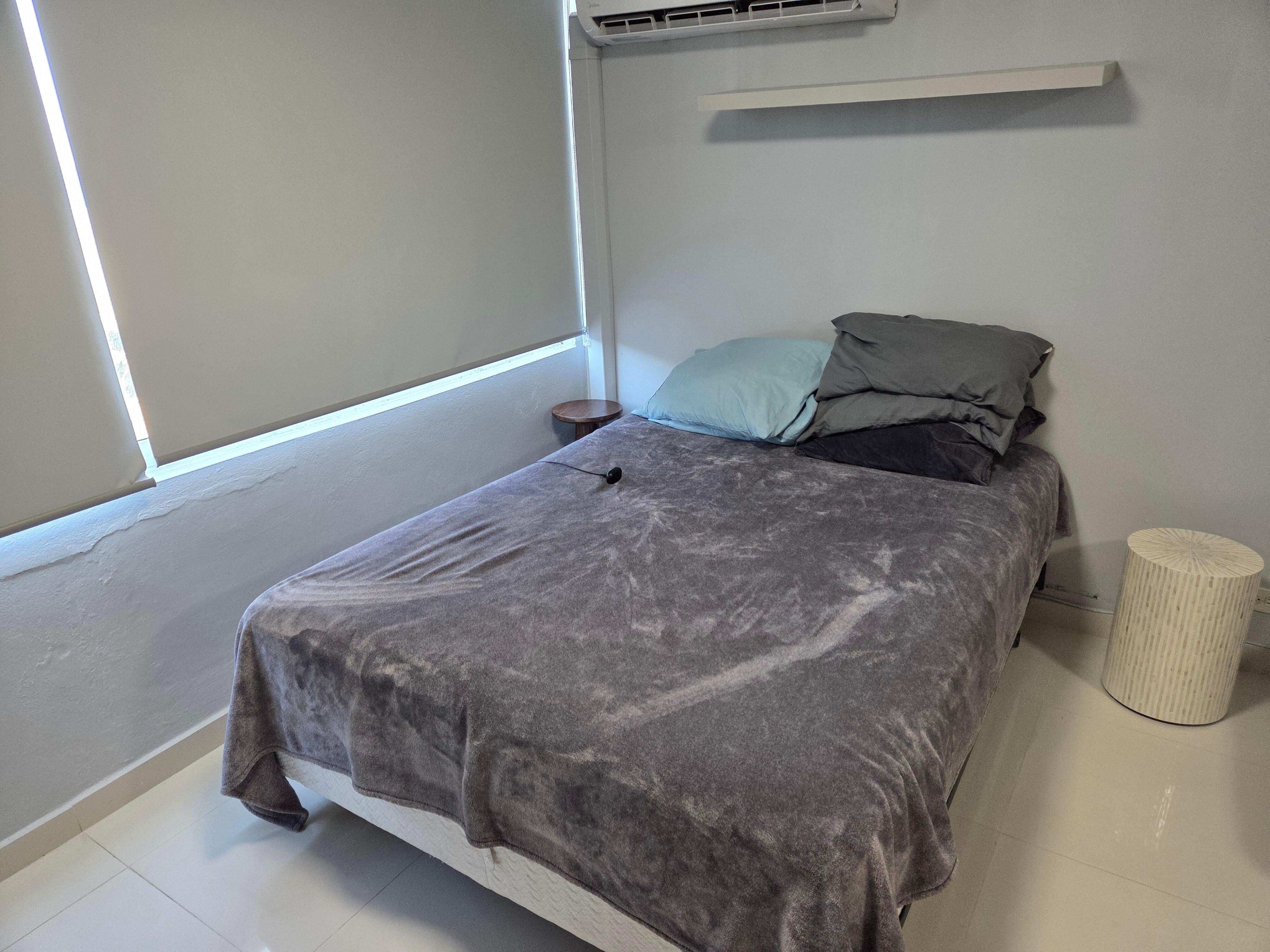 It has a Queen bed and a Futon Sofa (which can sleep two more people). It's intentionally minimalist and clutter-free, but it has all the essentials - just pack your clothes and toothbrush.