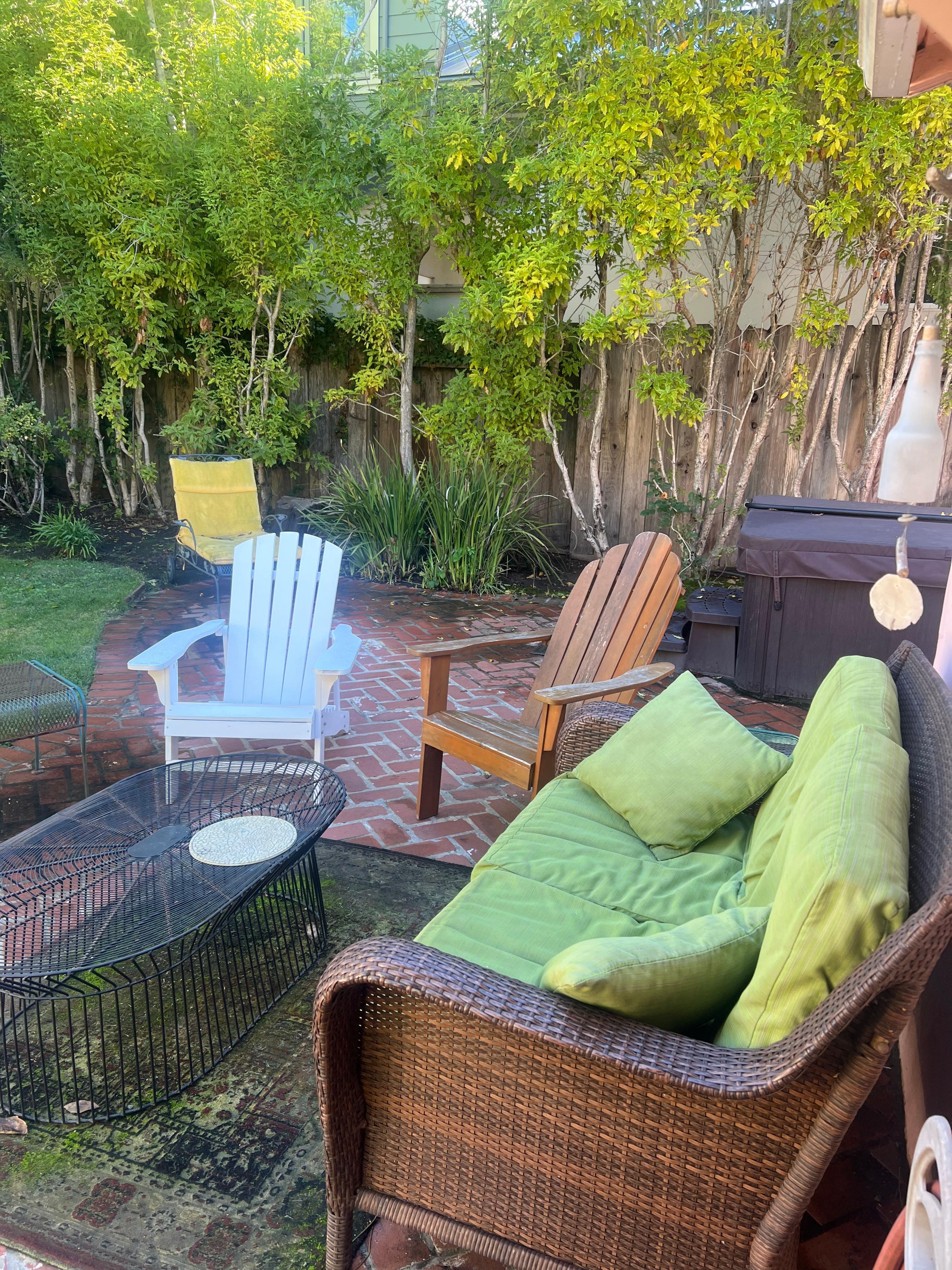 Es gibt drei Außensitzbereiche aus Ziegeln, einschließlich des hinteren und vorderen Hofs mit zwei Wärmelampen, einem Grill, einer Außendusche mit heißem Wasser und einem Whirlpool für den Genuss im Freien. Der Hinterhof ist von hohen Hecken und einem wunderschönen Rosengarten umgeben. Sowohl der Hinterhof als auch die Vorderseite sind aus Gründen der Privatsphäre und des Komforts für Sie und Ihre Haustiere eingezäunt.