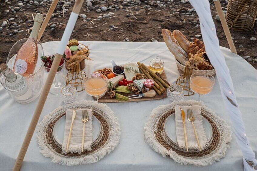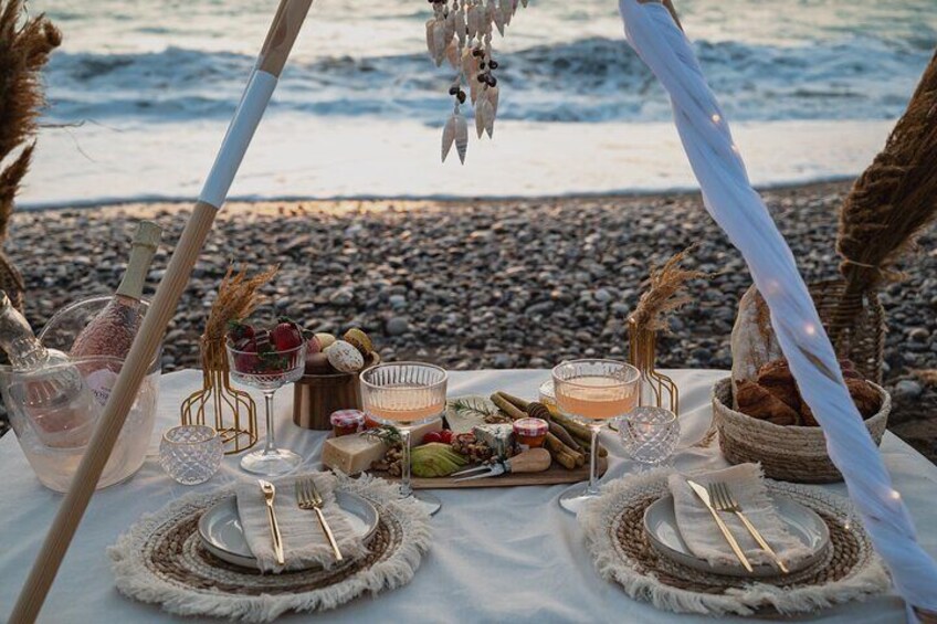 Picknick-Erlebnis bei Sonnenuntergang auf der Insel Rhodos